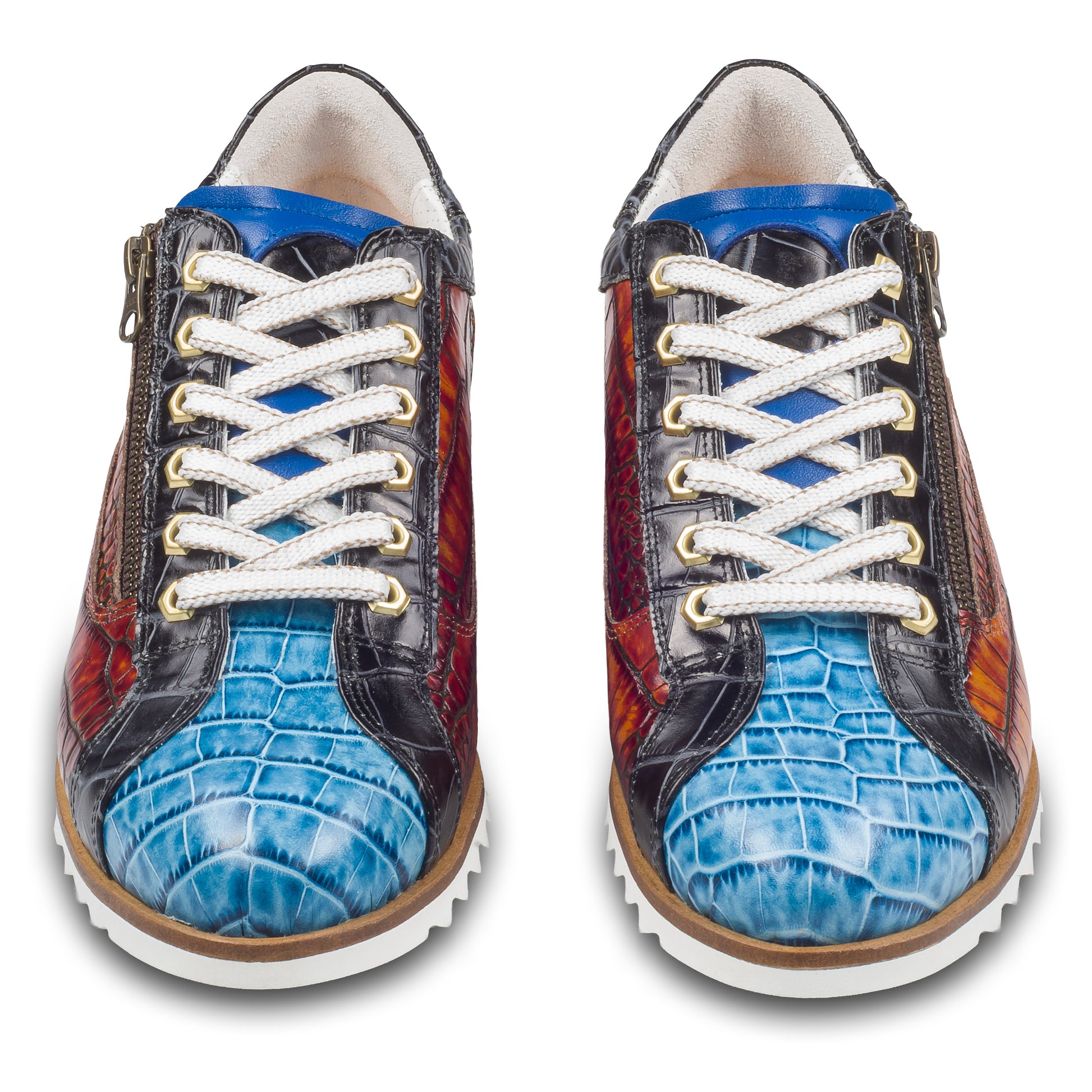 LORENZI Sneaker Herren blau/braun/schwarz - Kalbsleder mit Krokoprägung, Reißverschluß, handgefertigt