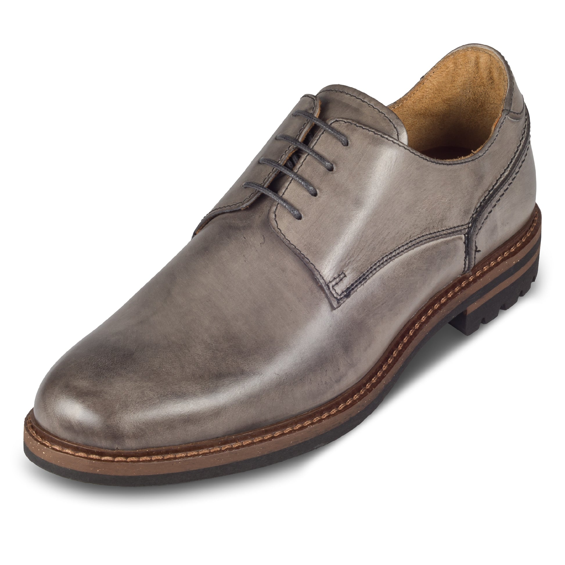 Klassischer Herren Derby Schnür-Halbschuh aus Kalbsleder mit Farbfinish von Hand. Der strapazierfähige Halbschuh besticht durch seine ganzjahres-taugliche Gummi-Profilsohle. Die helle Naht am Sohlenrand lockert das Erscheinungsbild gekonnt auf.